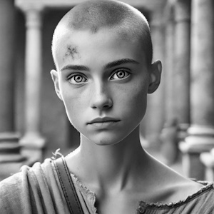 I dialoghi – fra virgolette – e i pensieri della protagonista sono in latino, attraverso espedienti avviene sempre un’immediata traduzione.